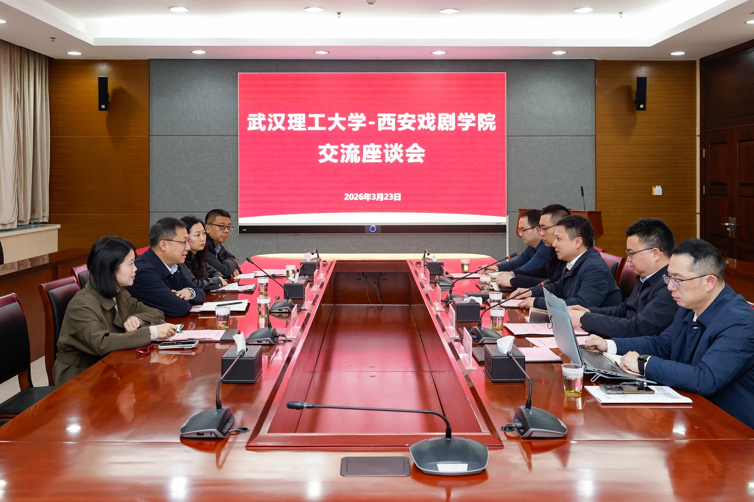 新闻网讯 3月23日下午,西安戏剧学院党委副书记荆昊一行来校调研交流。校党委书记孟芳兵在会议中心101会见了荆昊一行。校党委副书记李潮欣出席座谈会。