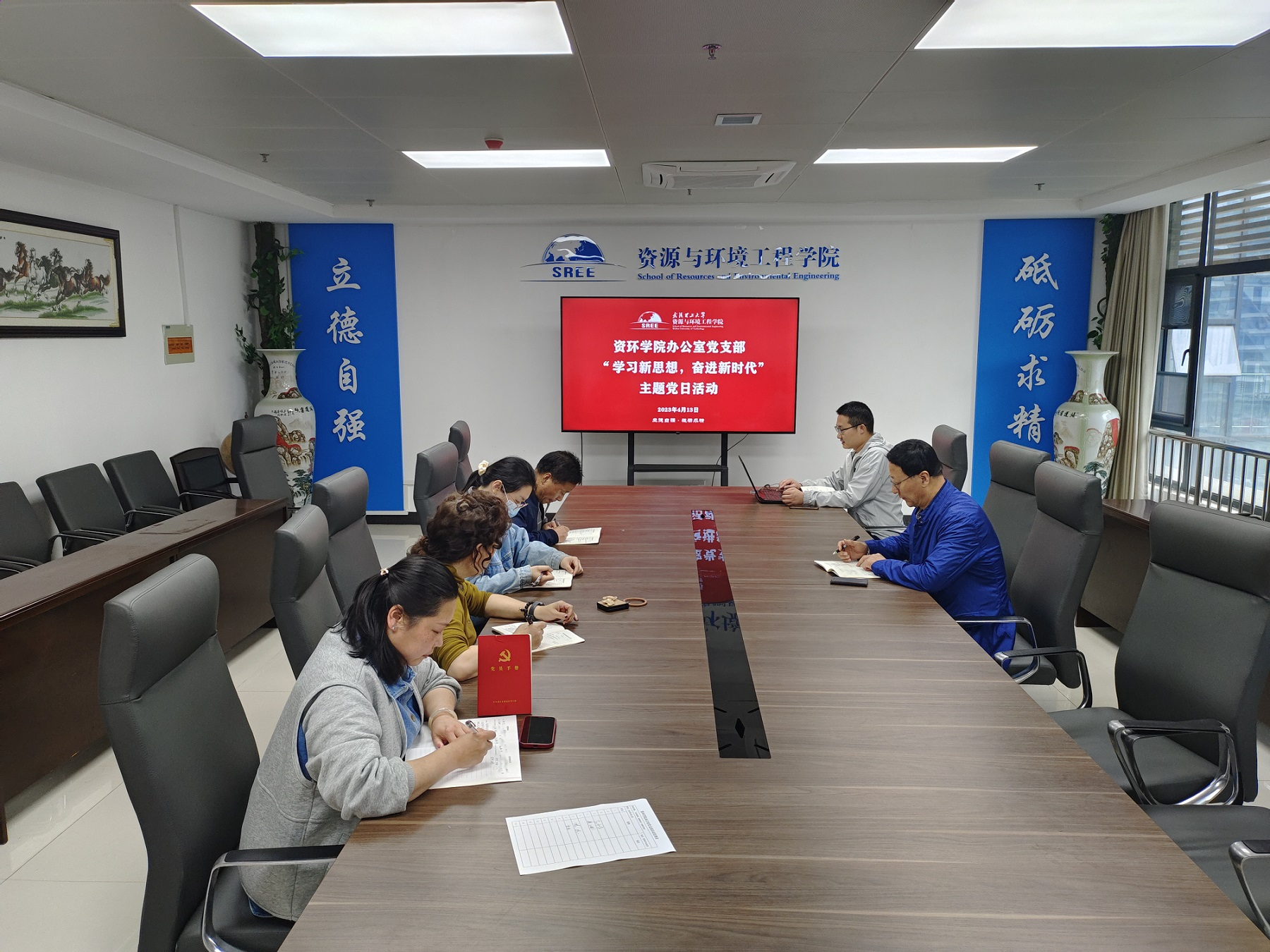 4月13日下午,资环学院办公室党支部在学院南409会议室开展了“学习新思想,奋进新时代”主题党日活动。活动由支部书记赵和平同志主持。