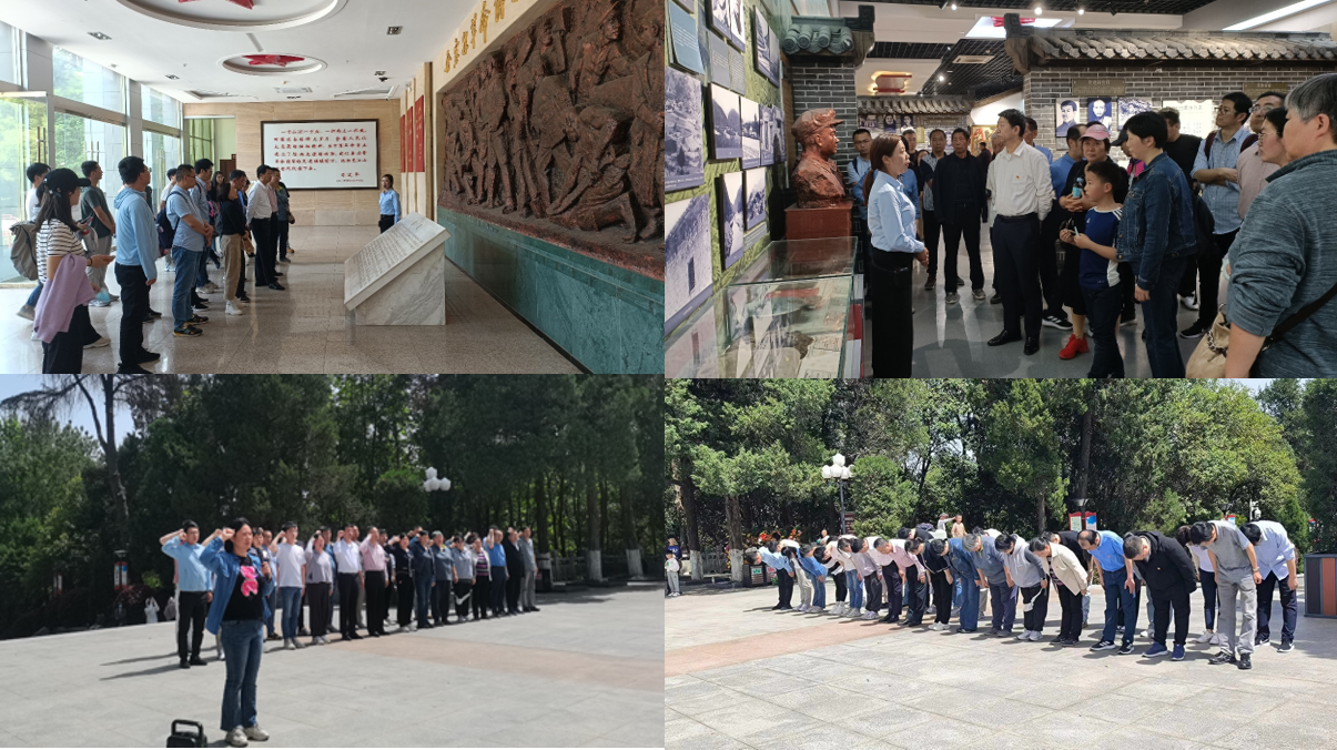 金寨县是中国革命的重要策源地,也是人民军队的重要发源地。活动中,全体党员参观了金寨县革命博物馆,通过学习历史资料,聆听解说员讲解,切身感受到了革命先烈做出的牺牲和奉献。“一寸山河一寸血,一抔热土一抔魂。回想过去的烽火岁月,金寨人民以大无畏的牺牲精神,为中国革命事业建立了彪炳史册的功勋,我们要沿着革命前辈的足迹继续前行,把红色江山世世代代传下去”。这是习近平总书记对金寨人民为中国革命贡献给予的高度评价,对金寨在中国革命中的历史地位作出的充分肯定。在金寨县红军广场,大家瞻仰了革命烈士纪念塔,并肃立默哀,向革命烈士三鞠躬、敬献花篮,以追怀先烈们的革命情怀和丰功伟绩,表达对革命烈士的崇高敬意。在革命烈士纪念塔前,全体党员面对鲜红的党旗,庄严地举起右拳,重温入党誓词。
