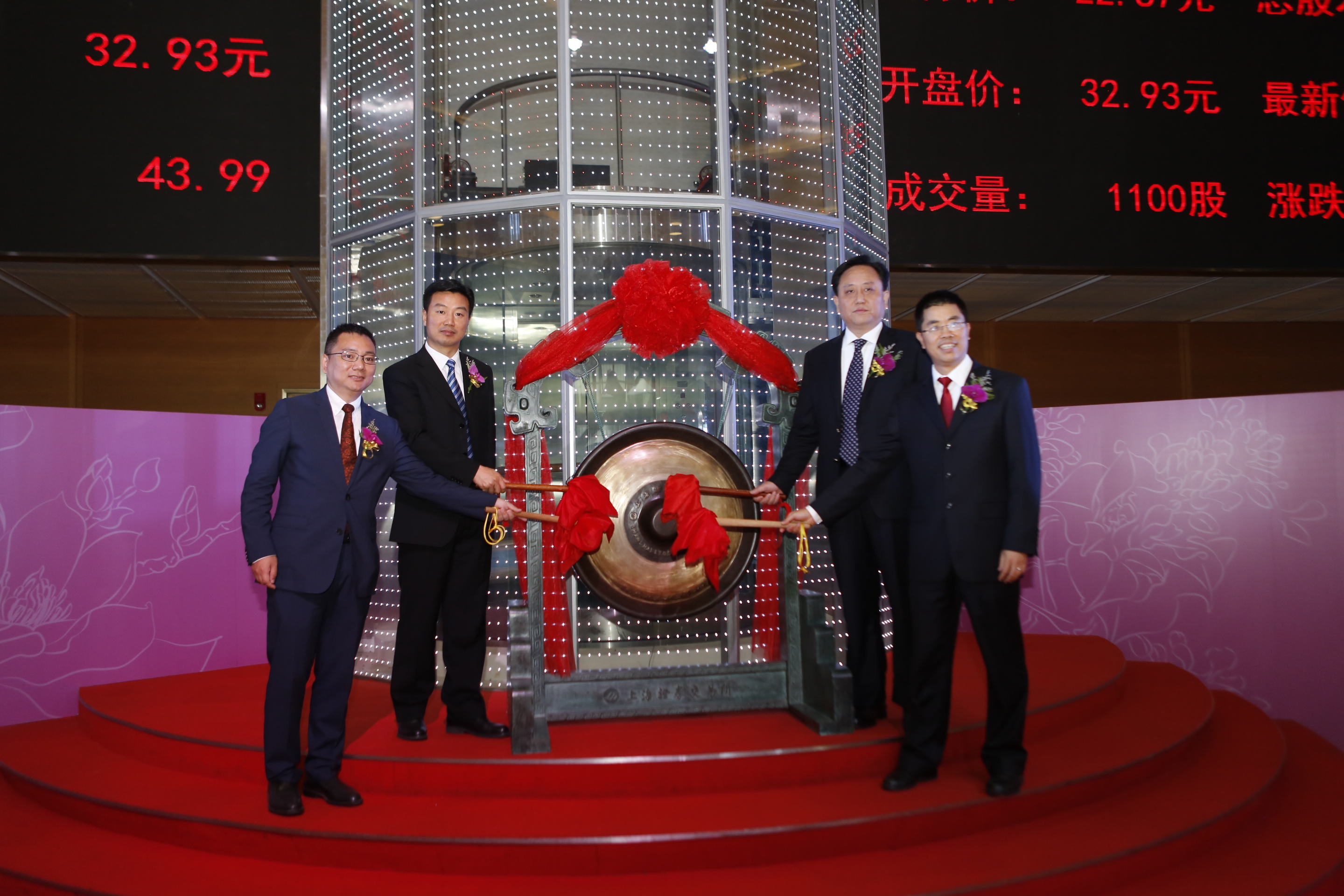 2017年5月19日保隆上市敲锣。陈洪凌(右),张祖秋(左)