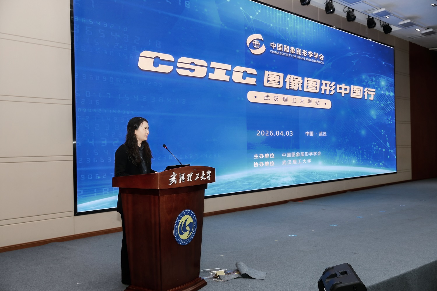 新闻网讯 4月3日上午,“CSIG图像图形中国行”学术活动在我校南湖图书馆学术报告厅举办。本次活动由中国图象图形学学会(CSIG)主办,主题为“从多模态大模型到具身智能:通向真实世界智能的关键断点”。副校长罗蓉出席活动,国内人工智能领域多位顶尖专家学者、校内师生代表共200余人齐聚一堂,共赴这场学术盛会。