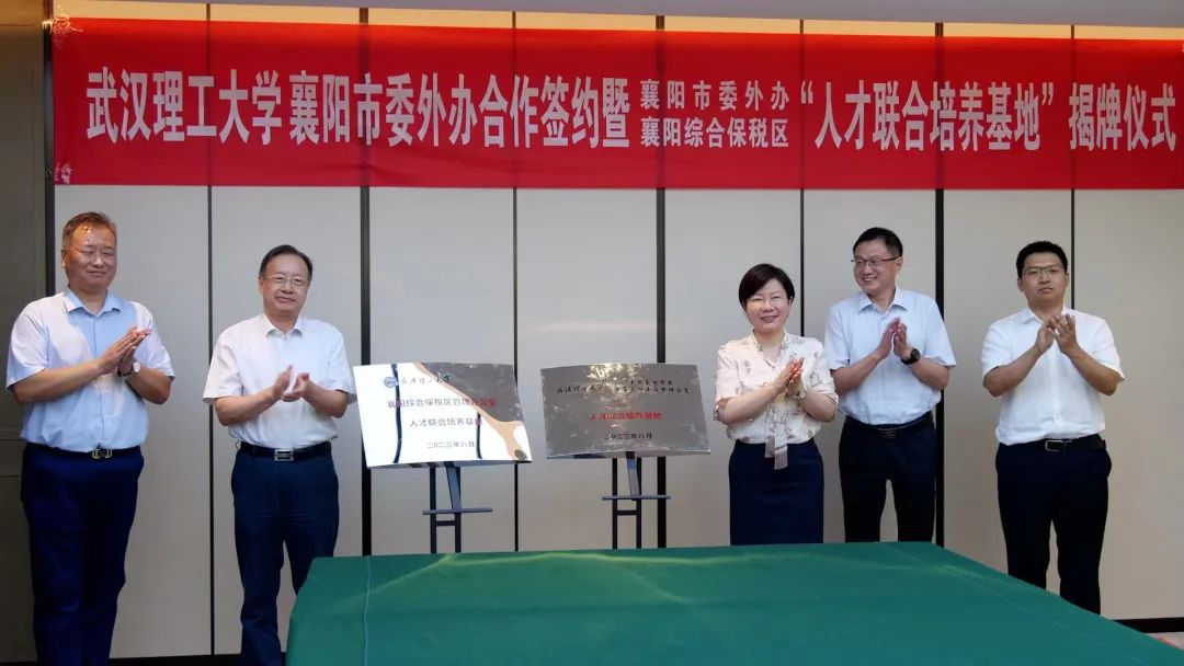龙小红、夏江敬共同为市委外办、襄阳综合保税区“武汉理工大学人才联合培养基地”揭牌。