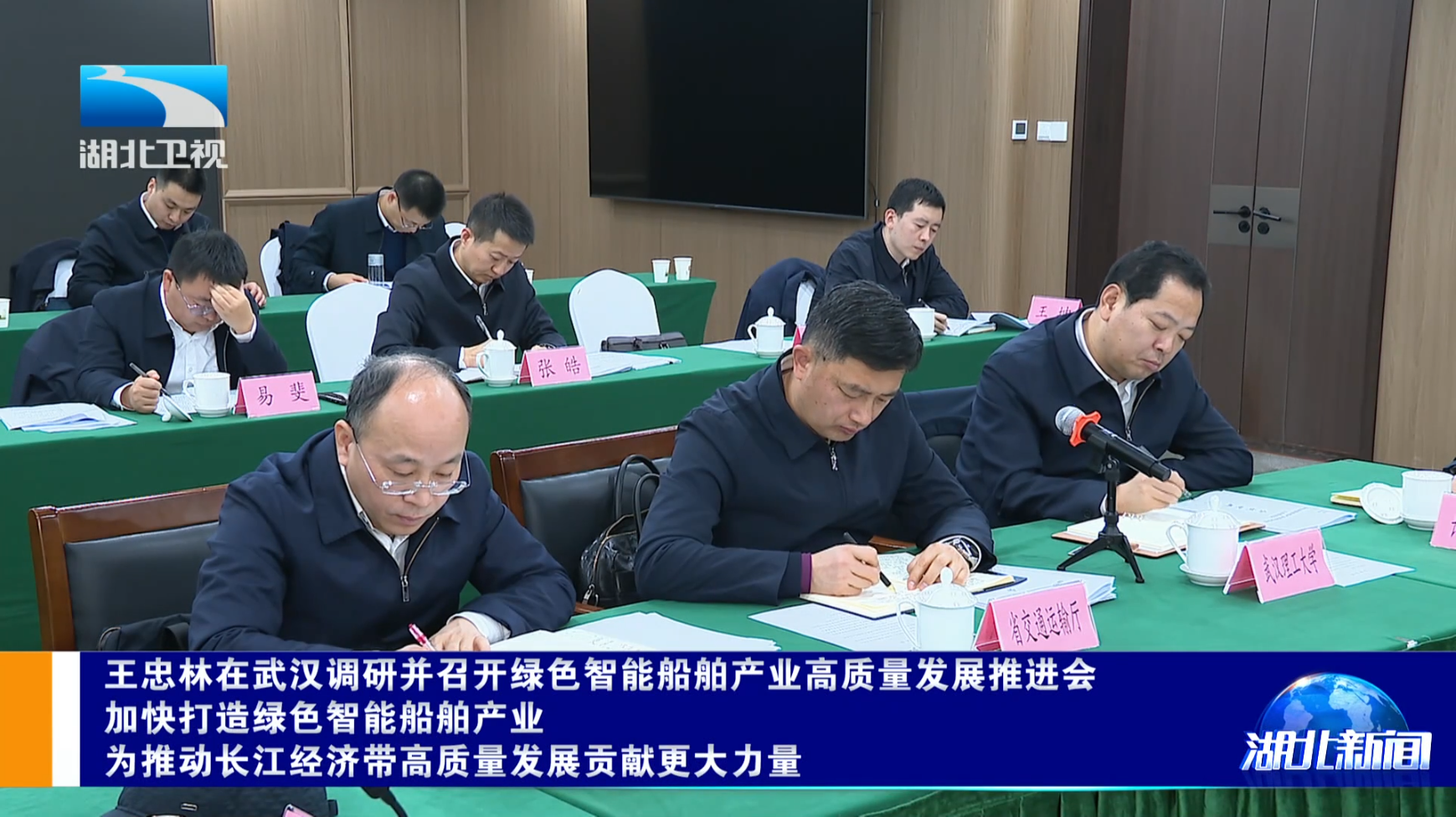 新闻网讯 1月13日,湖北省委书记、省人大常委会主任王忠林来校调研绿色智能船舶产业发展情况并主持召开推进会。他强调,要深入学习贯彻党的二十届四中全会精神和习近平总书记关于推动长江经济带发展的重要论述,坚持以科技创新为引领,抢抓机遇、发挥优势,努力把绿色智能船舶产业打造成为我省支柱产业,为进一步推动长江经济带高质量发展贡献更大力量。