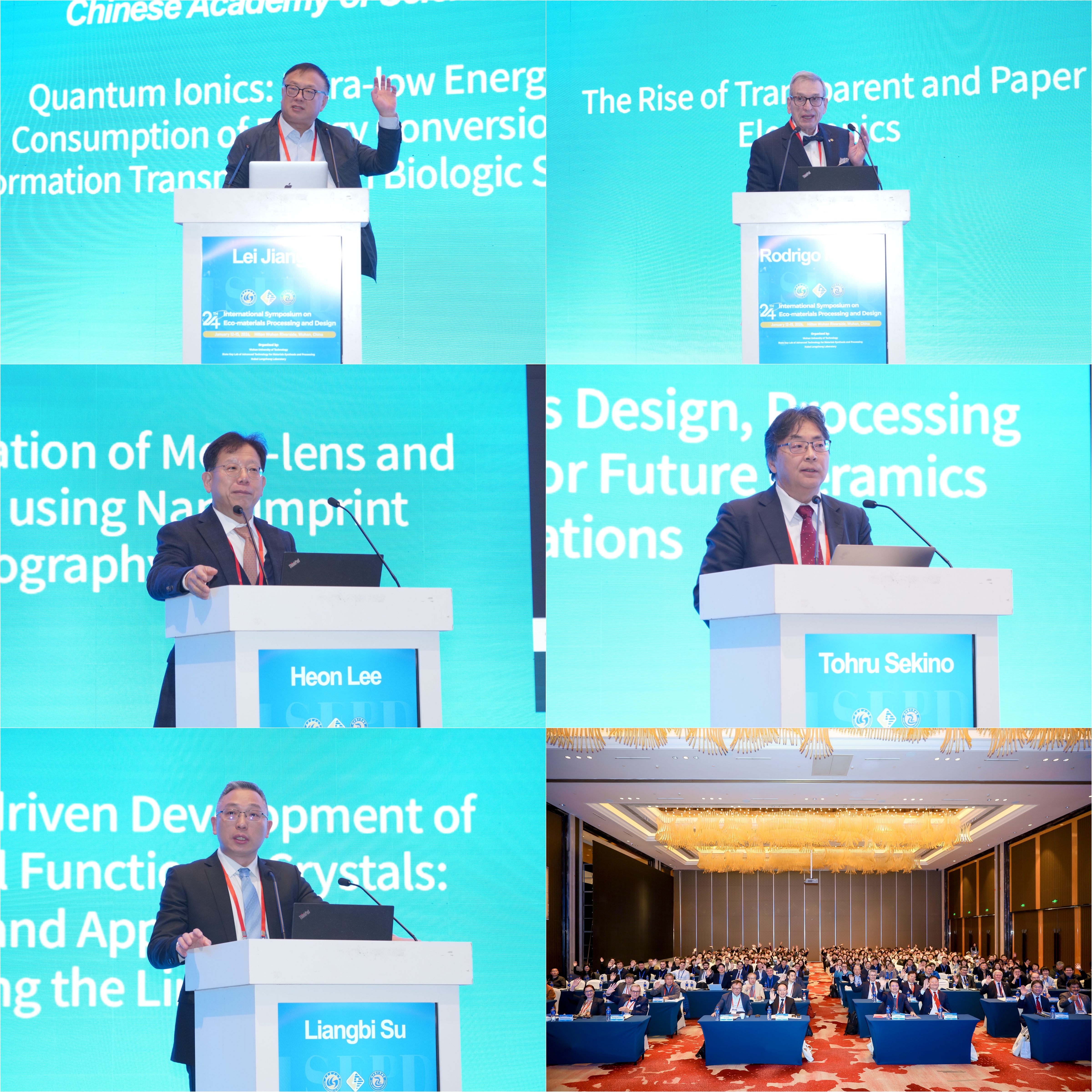 中国科学院理化技术研究所江雷院士、葡萄牙新里斯本大学Rodrigo Martins院士、韩国高丽大学Heon Lee教授、日本大阪大学Tohru Sekino教授、上海硅酸盐研究所苏良碧教授分别做大会报告。