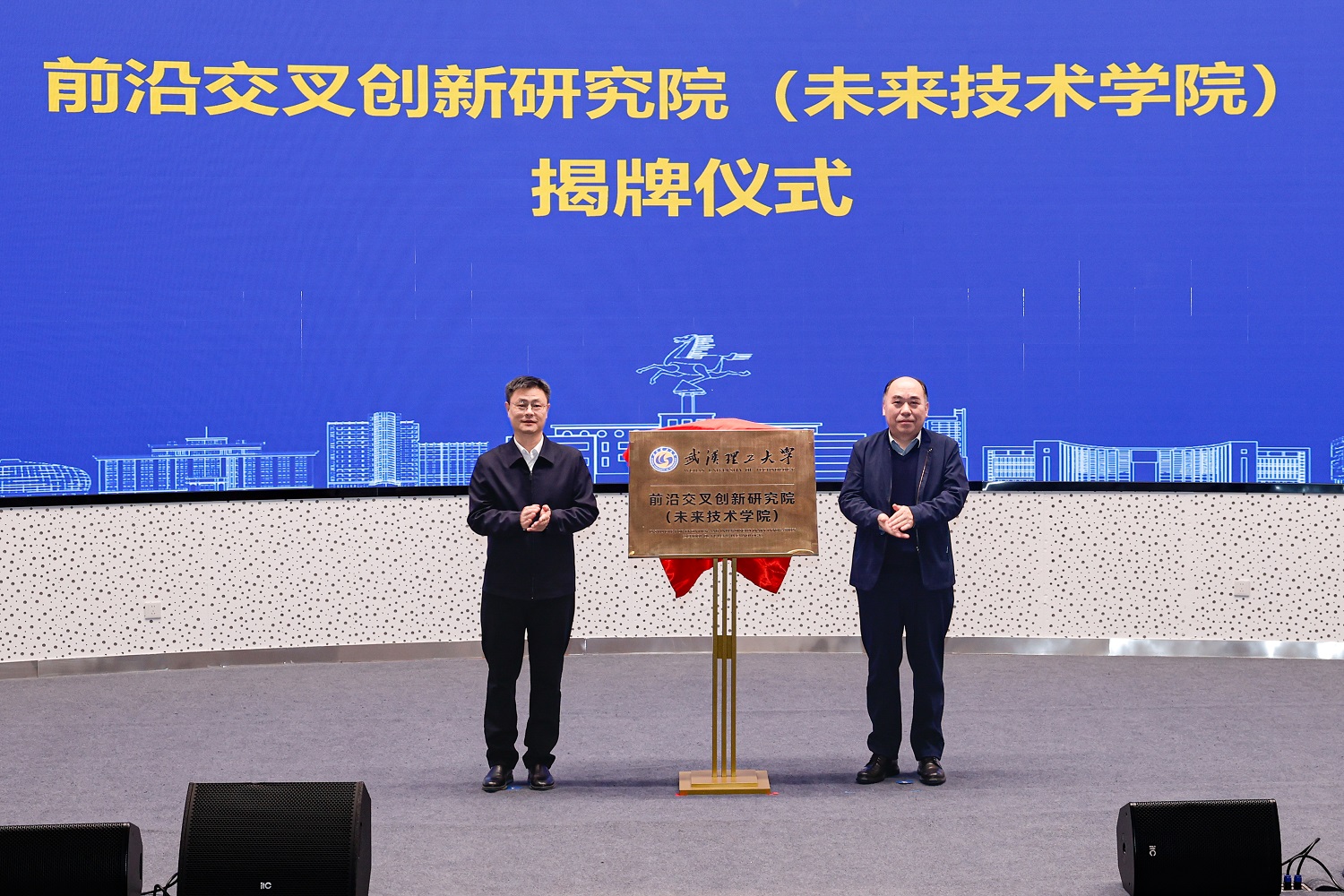 新闻网讯 1月19日,学校军山校区气氛热烈,前沿交叉创新研究院(未来技术学院)揭牌仪式举行。校党委书记孟芳兵,校长王发洲,中国科学院院士张清杰,中国工程院院士姜德生、张联盟、严新平、傅正义等出席会议。