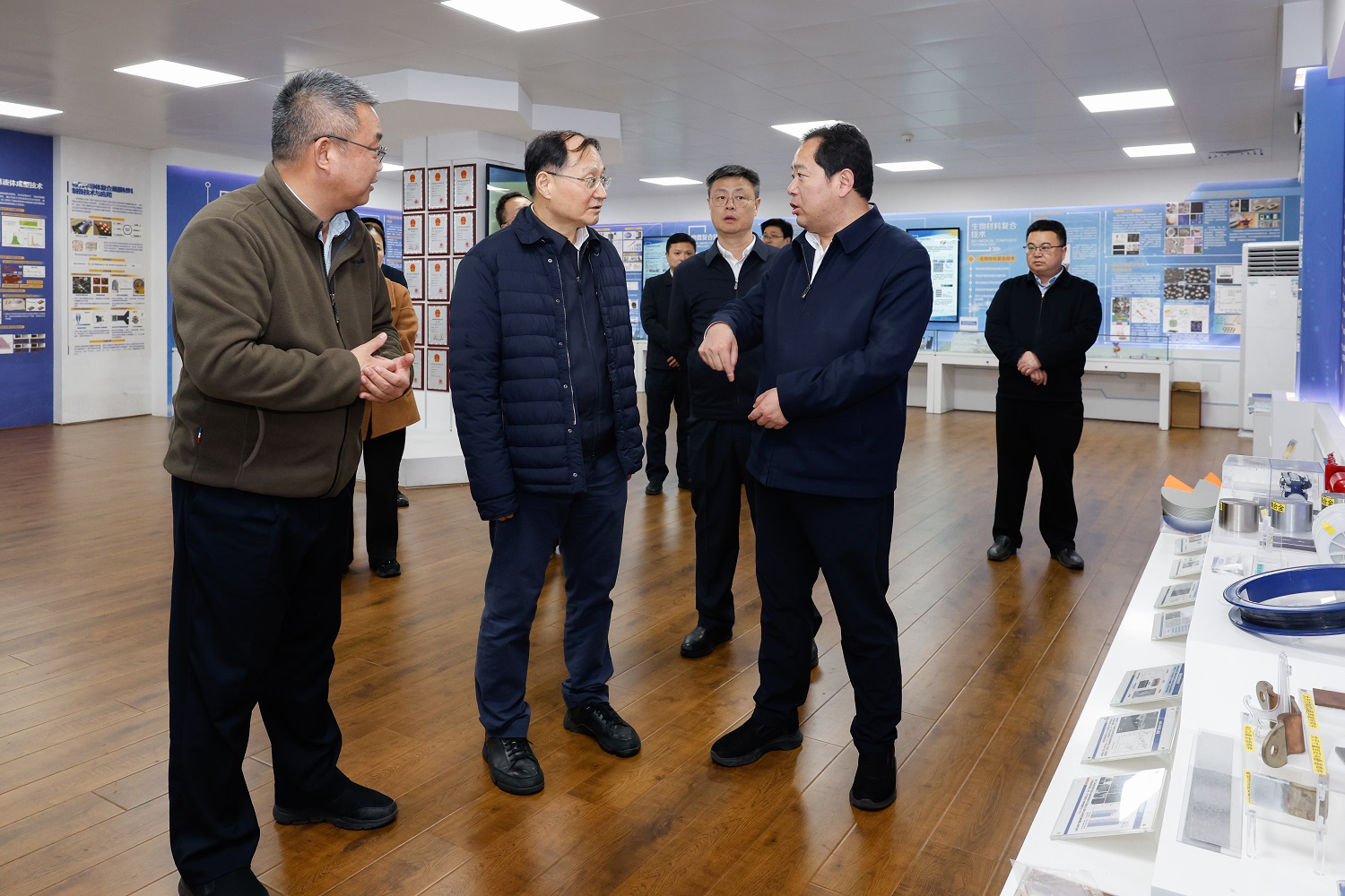 魏士强一行参观了学校光纤传感技术研究中心、硅酸盐材料工程研究中心、湖北省先进复合材料技术创新中心,详细了解相关领域的科研进展和成果转化情况。
