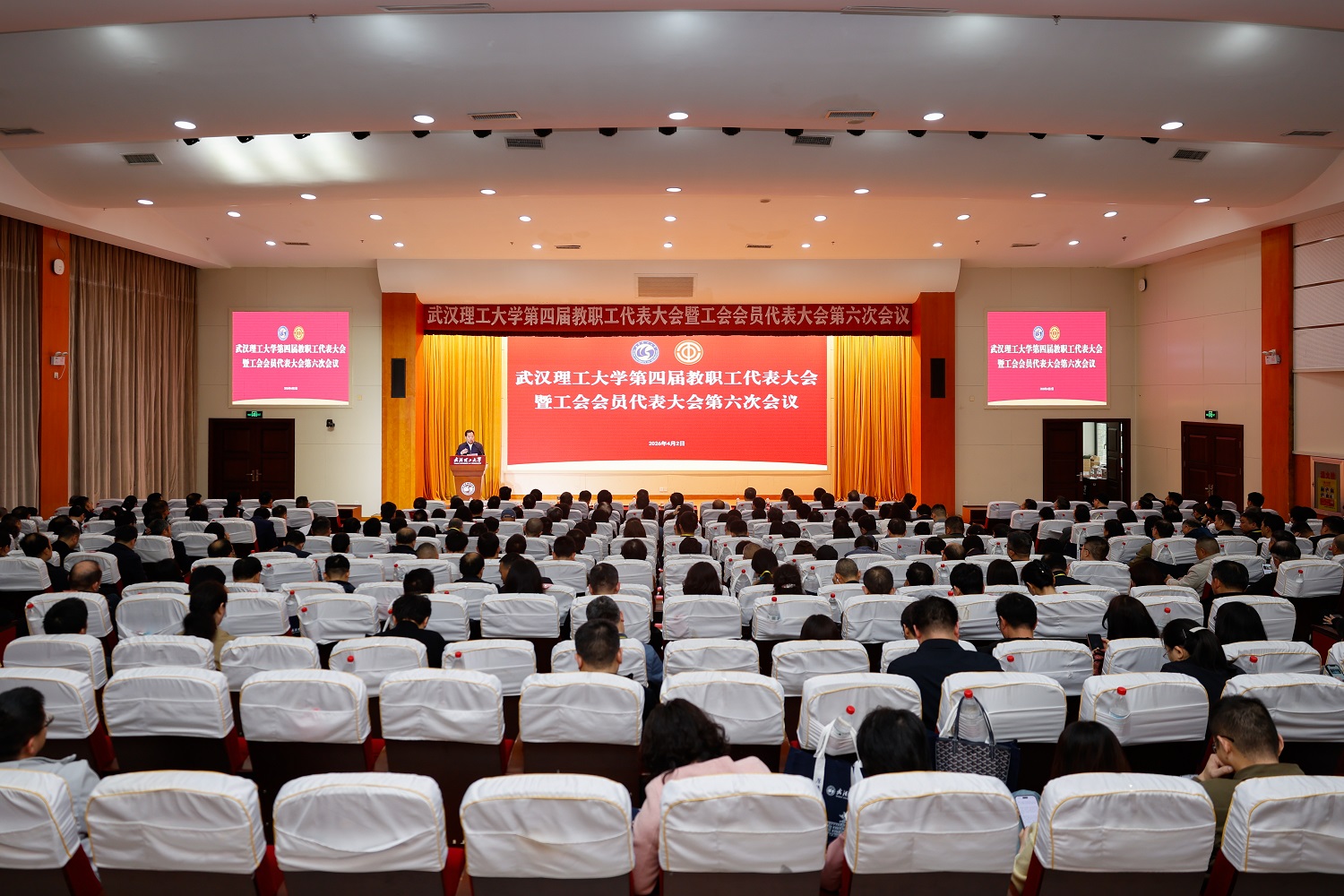 新闻网讯 4月2日上午,学校第四届教职工代表大会暨工会会员代表大会第六次会议举行。校党委书记孟芳兵、校长王发洲等校领导出席会议。300余名代表齐聚一堂,以高度的责任感和使命感,认真履职尽责,共同为谋划学校高质量发展凝聚共识,建言献策。