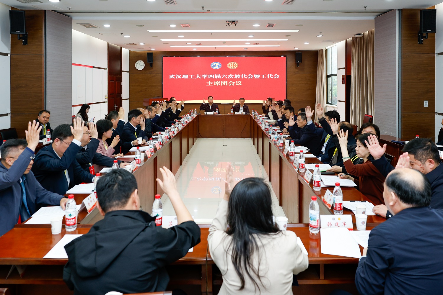 校党委书记孟芳兵主持召开大会主席团会议,会议审议了《武汉理工大学第四届教职工代表大会暨工会会员代表大会第六次会议决议(草案)》。