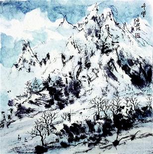 在技法上,寒林对笔的要求特别高。山水画中,山石的轮廓当然亦得用笔,不过在层层渲染和反复用皴法表现之后,笔的功能已经退居其次。房舍亭寺和人物则是山水的点缀,其用笔可略去不论。相比之下,寒林应是笔笔见功夫,来不得半点马虎和虚饰。明白这个道理,再来品鉴徐进波的寒林,更能体会其精髓。