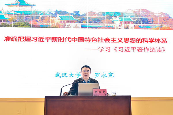 报告会上,罗永宽教授详细讲解了《习近平著作选读》形成的时代背景和历史逻辑,全面梳理了《习近平著作选读》中的原创性新贡献,深入阐述了习近平新时代中国特色社会主义思想科学体系的内在逻辑,简明概括了习近平新时代中国特色社会主义思想在马克思主义发展史上的历史地位,为读书班集中研学《习近平著作选读》做了全面讲解辅导。
