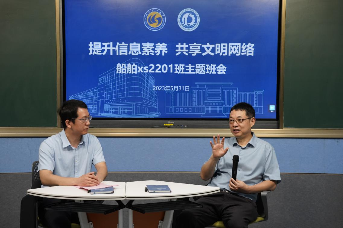 新闻网讯(通讯员 吴思怡 摄影 刘璐 许余庆)5月31日上午,校长杨宗凯以《深入学习习近平新时代中国特色社会主义思想推动学校事业高质量发展》为题,为船海能动学院仿真中心与高性能舰船党支部、船海本科生一支部师生讲授了一堂生动深入的专题党课;参加了船海能动学院船舶xs2201班开展的《提升信息素养 共享文明网络》主题班会。