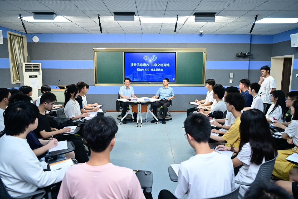 杨宗凯校长寄语在座青年学生“20岁是人最具有创造力和创新力的年纪,希望同学们可以提高信息素养,树立正确价值观,加强团队交流沟通,培养良好的网络驾驭能力,将知识与能力良好结合,为数字化转型贡献青春力量。”班会最后,班主任贺伟带领全体学生一同倡议:“依法上网、文明上网,安全上网、自律上网、科学上网,共同做网络文明传播者,让网络文明信号满格!”