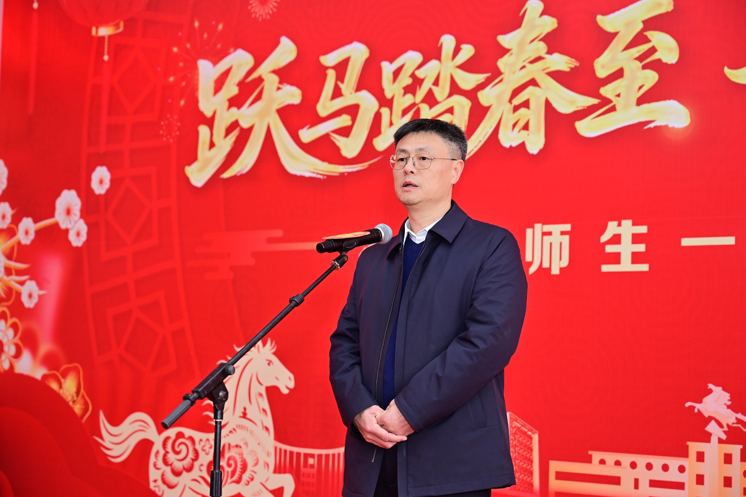 王发洲代表学校向全体师生员工致以最诚挚的新春祝福。对寒假期间依然坚守岗位、辛勤工作的教职员工表示衷心感谢。他指出,“十四五”期间是“极不寻常、极不平凡”的五年,学校各项事业发展取得显著成效,更加聚焦服务国家战略的办学格局不断拓展,科研水平与育人质量同步提升,校园环境持续优化,并涌现出“最美教师”“最美大学生”“最美辅导员”等一批先进典型。这些成绩的取得,凝聚着每一位理工大人的智慧与汗水。面向“十五五”新征程,他勉励全体师生继续携手同心、奋发前行。寄语同学们要以文化人、厚植情怀,在感受传统年俗、欢度佳节的同时,主动体悟中华文化的深厚底蕴,自觉将个人理想融入国家发展;要追求卓越、锤炼本领,保持与时代同频共振,在勤学与深思中不断超越自我,打牢成长根基;要勇于创新、矢志报国,将创新作为成长的核心动力,积极投身科技自立自强的时代浪潮,在未来的人生舞台上书写新的辉煌。