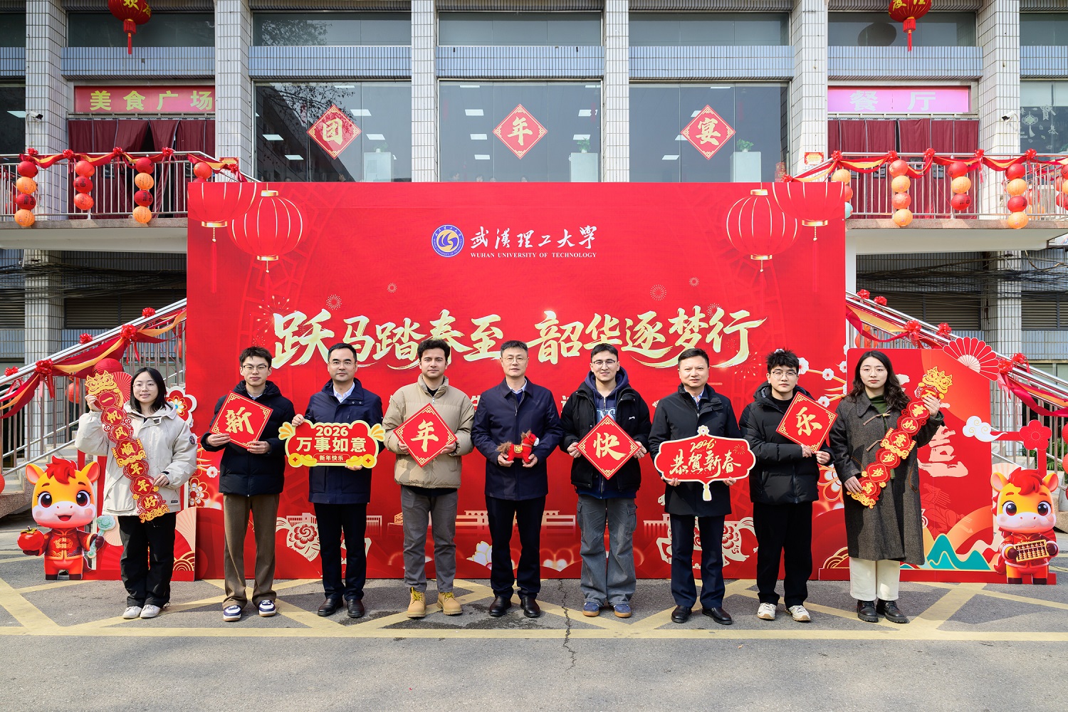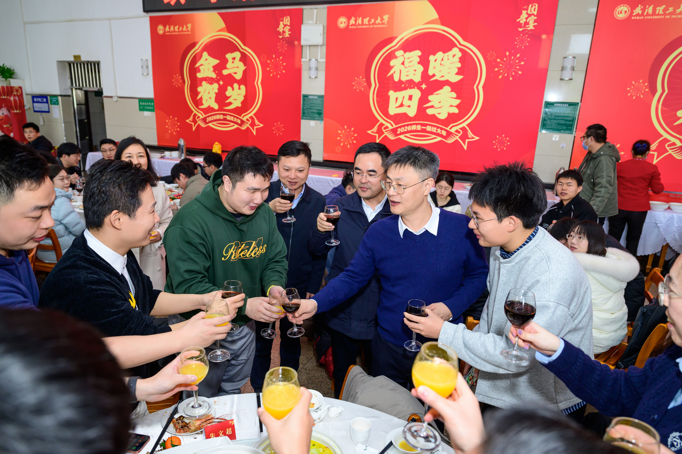 新闻网讯 家有烟火暖岁华,校有温情聚新春。2月11日,在农历丙午马年新春来临之际,学校在莘子院食堂举行留校学生团年宴。校长王发洲,校党委副书记李潮欣,副校长胡剑,党政办、学工部、研工部、基建处、后勤集团等单位负责人,有关学院党委副书记和辅导员,与留校学生欢聚一堂,共迎新春佳节。