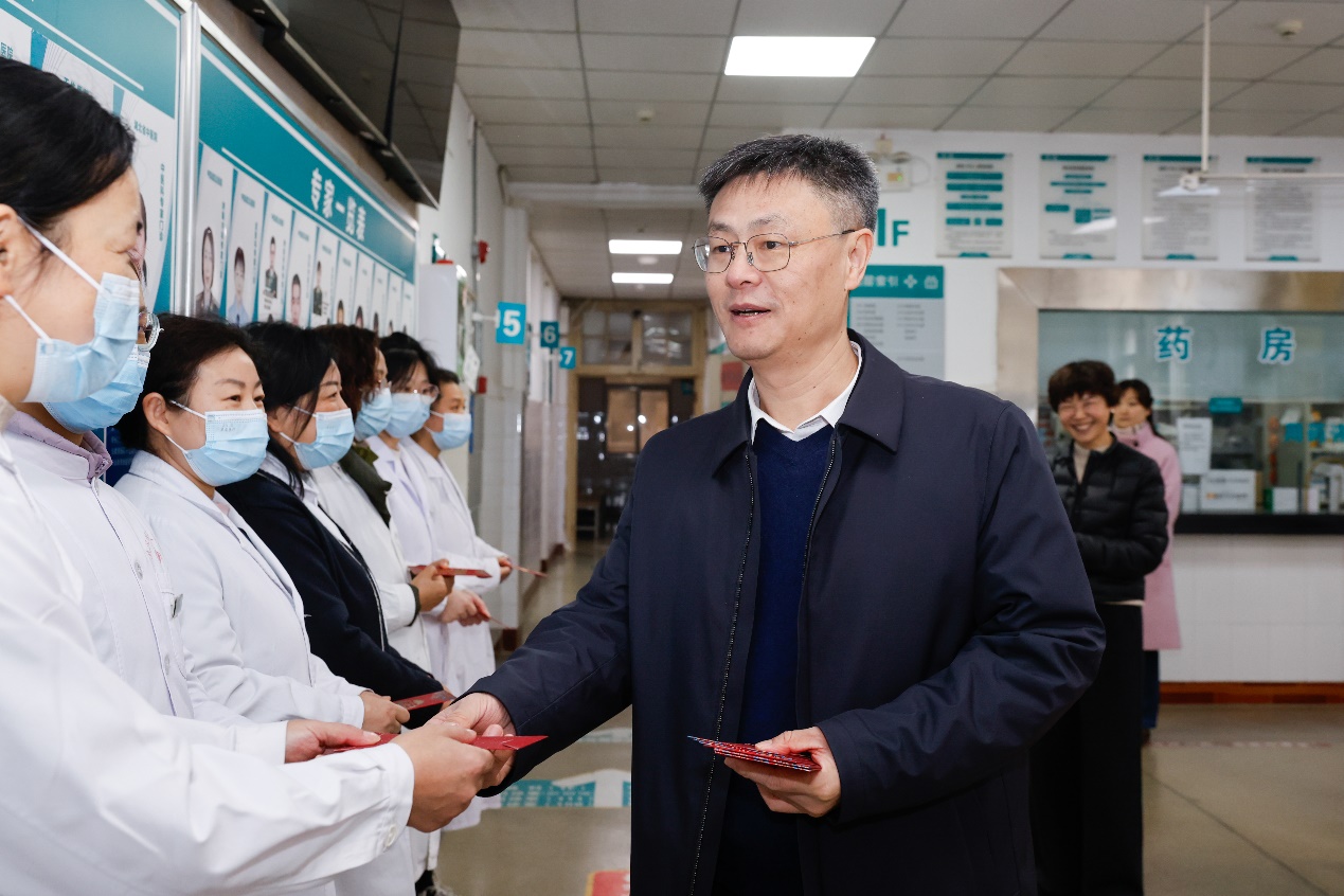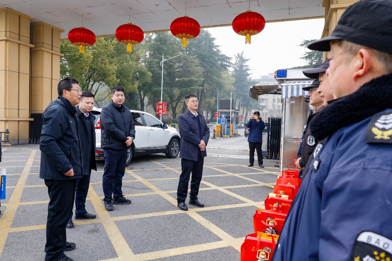校领导一行分别前往马房山校区、余家头校区和南湖校区,看望慰问校园保卫、消防、治安、基建维修、水电、保洁物业、食堂、校医院等在岗职工,与大家亲切交谈,详细询问了他们工作生活和值班值守等情况,并送上新春祝福和学校精心准备的慰问品。