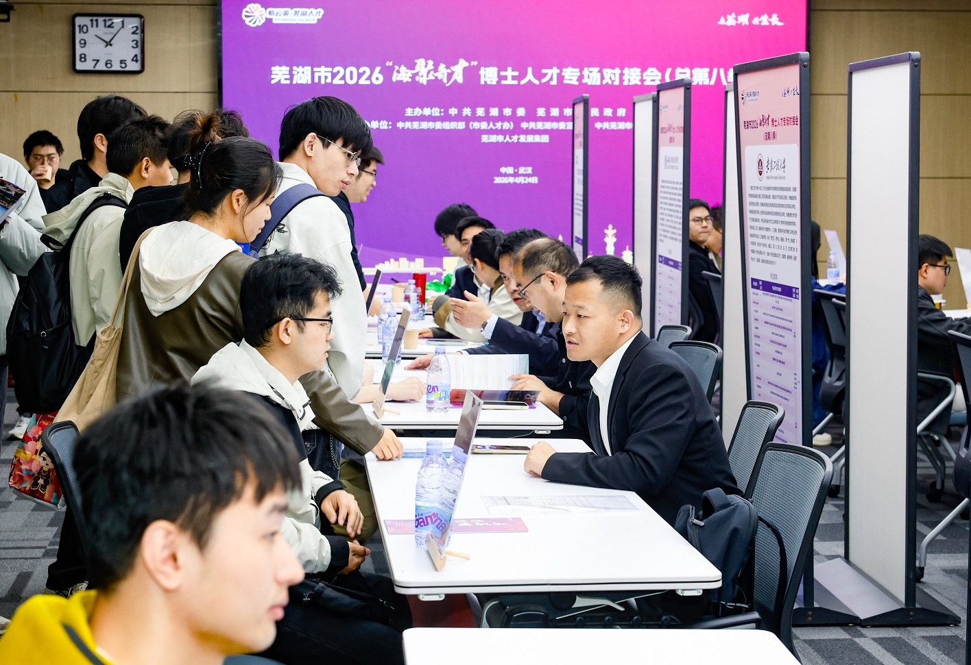 新闻网讯 紫云英花开、芜湖等您来,4月24日,2026年“校园芜湖日”活动在校举行。芜湖市委书记宁波、副市长朱子,校党委书记孟芳兵、校党委副书记刘春江等出席人才招聘宣讲会、产学研合作恳谈会等相关活动。
