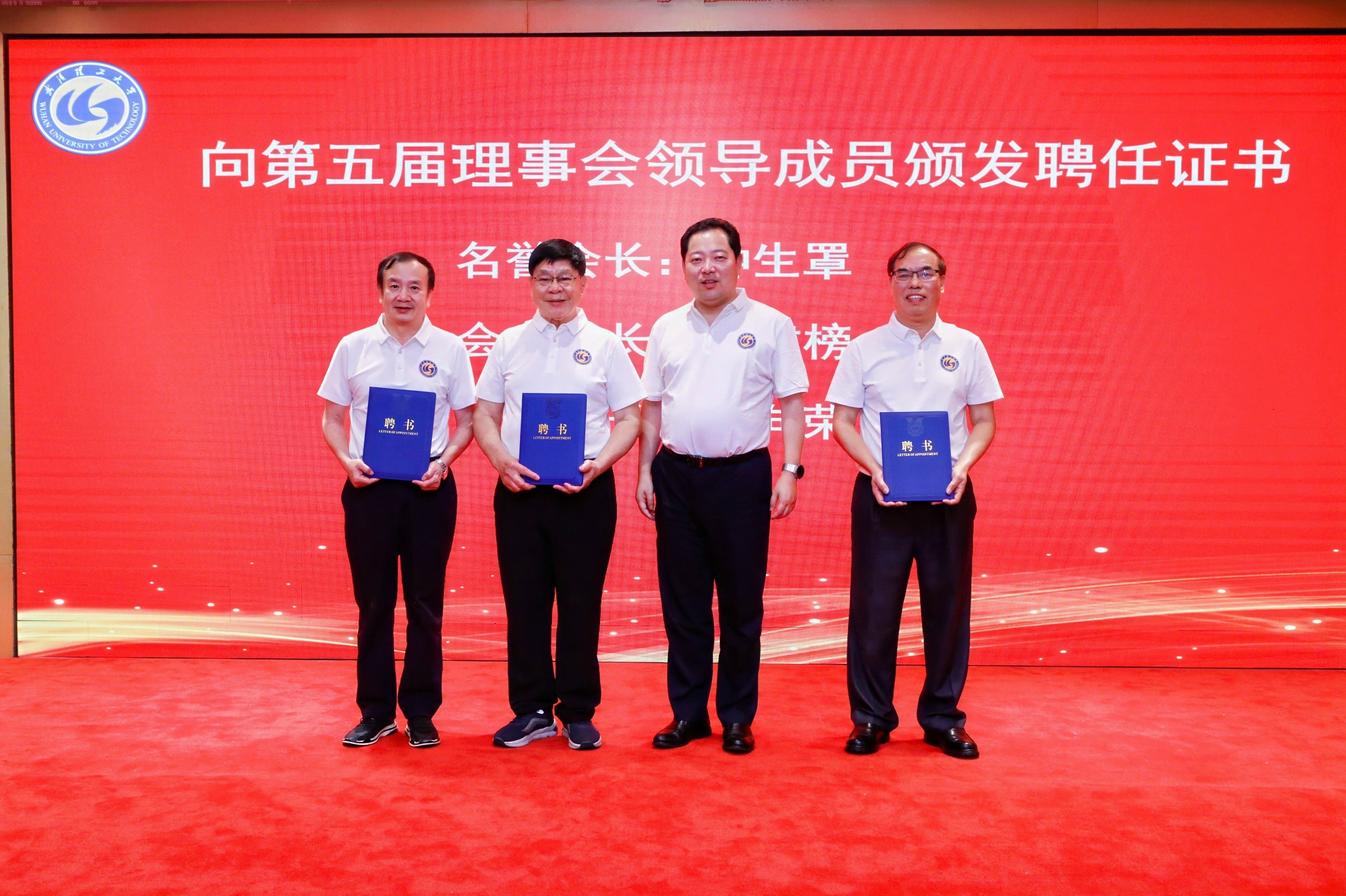广西校友会执行会长陈向荣代表第四届广西校友理事会作工作报告,大会表彰广西优秀校友工作者,选举产生第五届广西校友理事会,李建榜校友当选会长。孟芳兵为广西校友会名誉会长钟生罩颁发纪念证书,为新当选的会长李建榜、执行会长陈向荣颁发聘书。