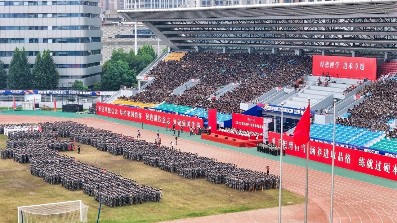 新闻网讯 9月27日上午,学校2025级本科生军训总结表彰大会于南湖体育场举行,大会旨在检验军训成果,并对军训期间表现优异的集体和个人进行表彰。副校长张笛、承训部队负责人、学校相关职能部门负责人,各学院党委副书记、书院执行院长、新生辅导员及2025级本科新生参加大会。