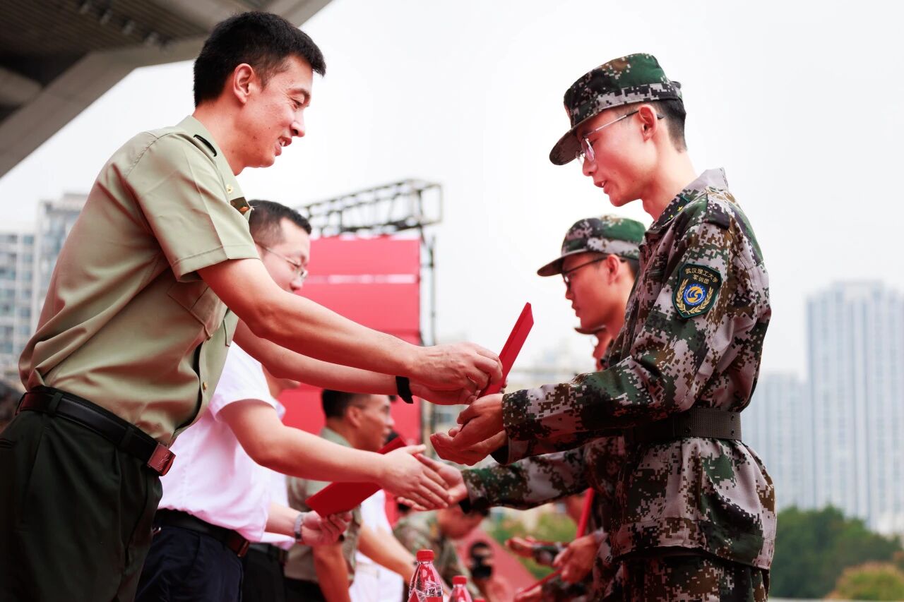 大会在校歌《卓越之歌》中落下帷幕。历时14天的军训工作,全体教官科学训练、新生辅导员全程陪同训练、专业教师指导推动训练、国防志愿者助教协助训练、9600余名新生积极参与训练,顺利完成了本次军训任务、实现了预定目标、收获了丰富成果。经过训练,同学们磨炼出坚韧的意志品质、积极进取的拼搏精神,外修形、内铸魂,希望同学们以军训这堂国防教育实践课为起点,树立爱国情怀、培育奋斗志向,奋力谱写“厚德博学,追求卓越”的青春华章。
