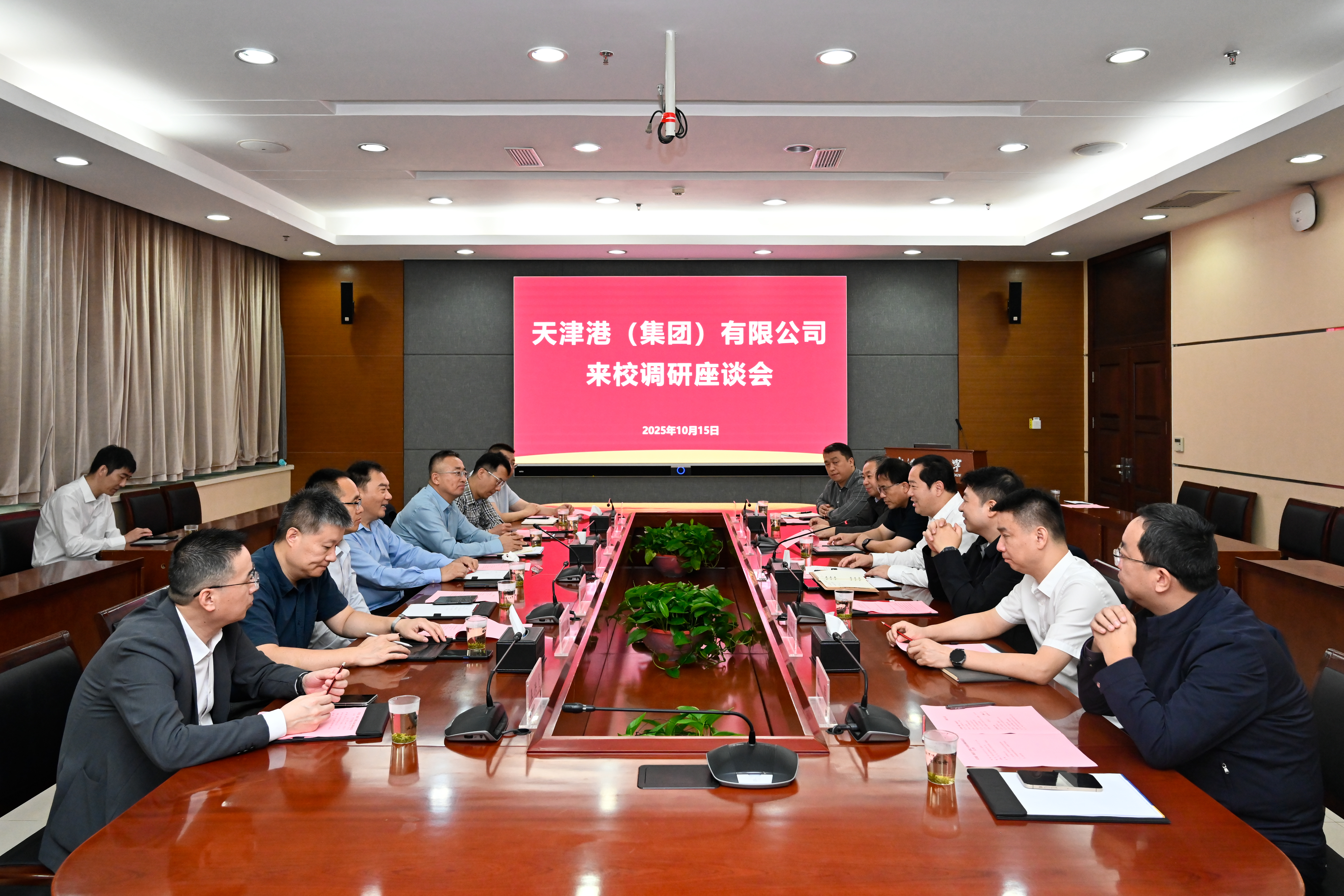 新闻网讯 10月15日上午,天津港(集团)有限公司总裁焦广军一行来校调研交流。校党委书记孟芳兵出席相关活动。副校长张笛主持座谈会。