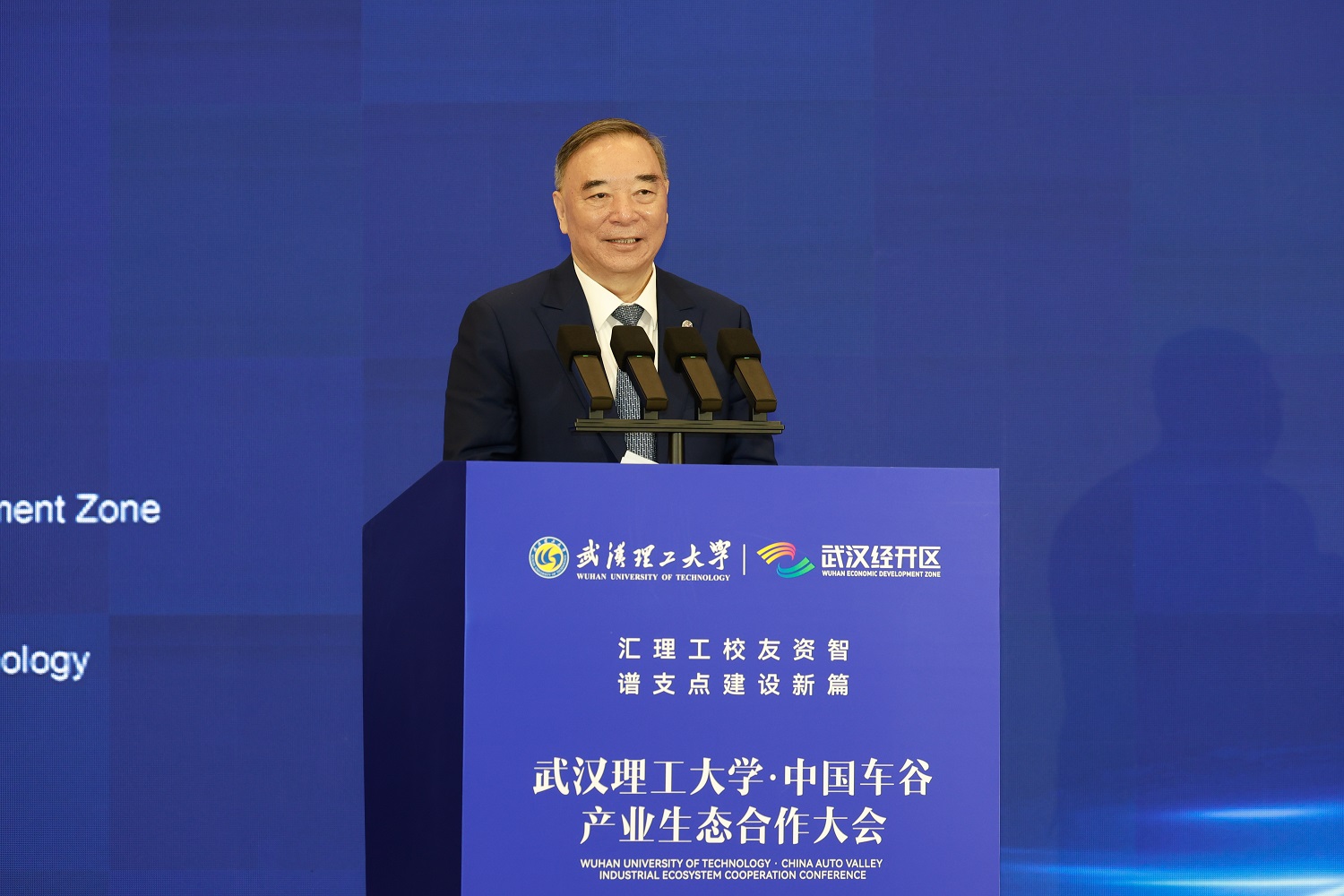湖北省政协副主席马旭明,武汉市委常委、武汉经开区党工委书记刘子清,武汉市人民政府副市长李湛,武汉经开区党工委副书记、管委会主任唐超,学校全体校领导,校友企业家和行业企业家代表出席大会。校党委书记孟芳兵主持大会。校长王发洲作专题推介。