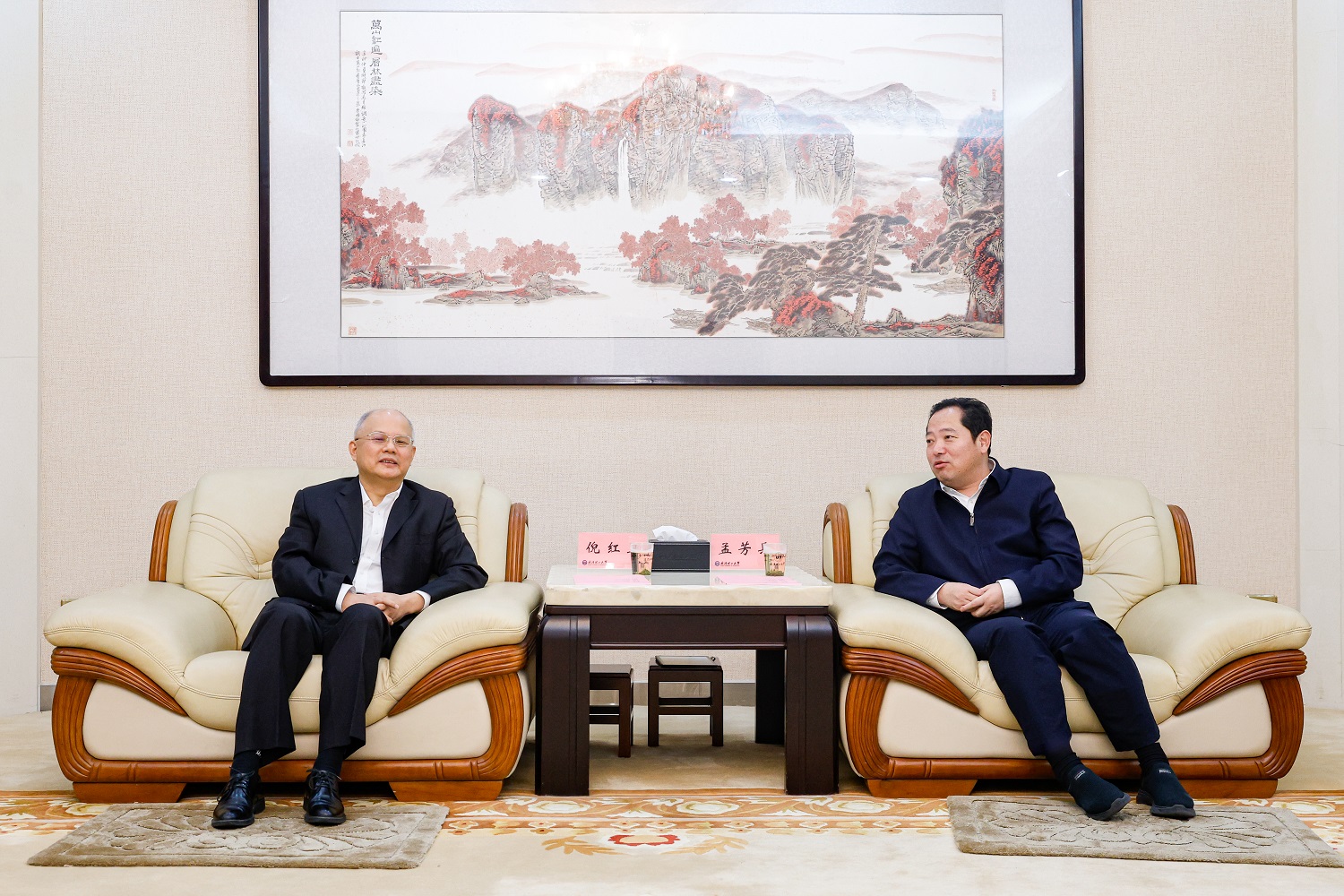 新闻网讯 10月21日,武汉科技大学党委书记倪红卫、校长吕勇一行来校调研,校党委书记孟芳兵、校长王发洲在会议中心101会见了倪红卫、吕勇一行。武汉科技大学副校长董丽杰、党委常委包申旭,学校副校长刘春江、校长助理胡剑参加会见交流。