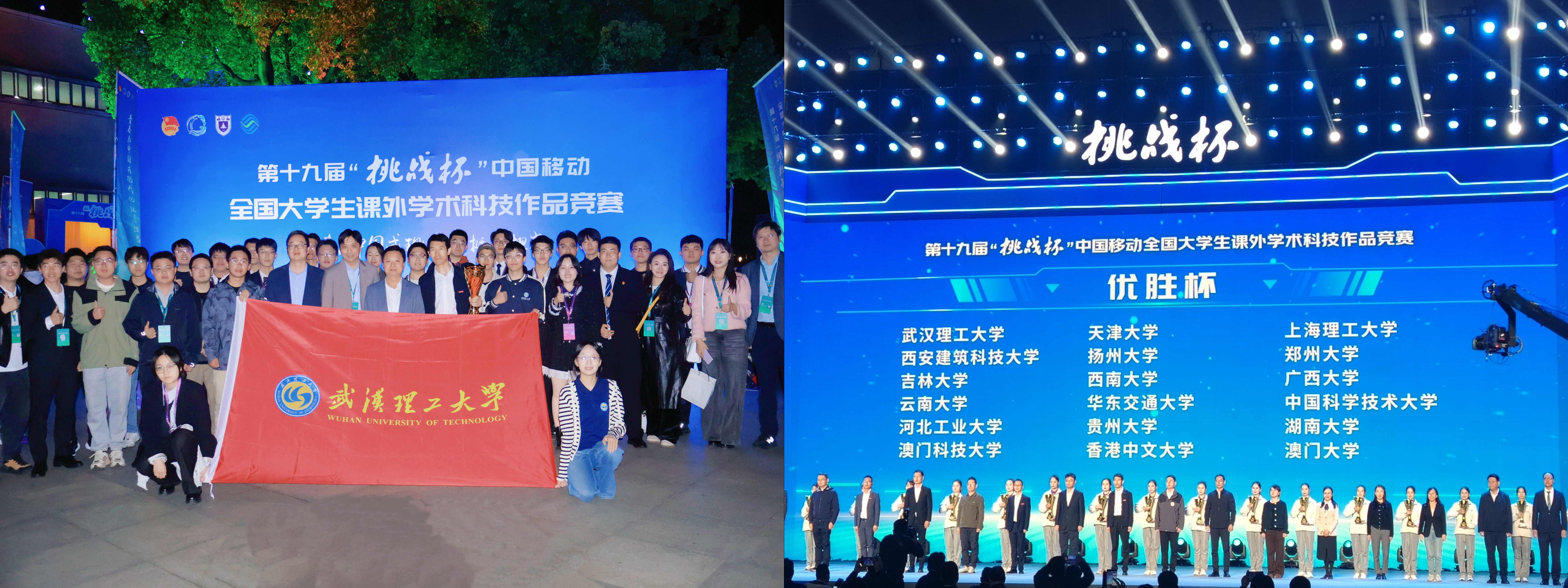 新闻网讯 11月3日,第十九届“挑战杯”全国大学生课外学术科技作品竞赛在南京大学落幕。我校荣获主体赛一等奖1项、二等奖4项、三等奖1项,“揭榜挂帅”专项赛擂主1项、特等奖6项、一等奖7项、二等奖10项、三等奖4项、优秀奖1项,“人工智能+”专项赛一等奖1项、二等奖1项,获奖总数创历史新高,捧得全国“优胜杯”。
