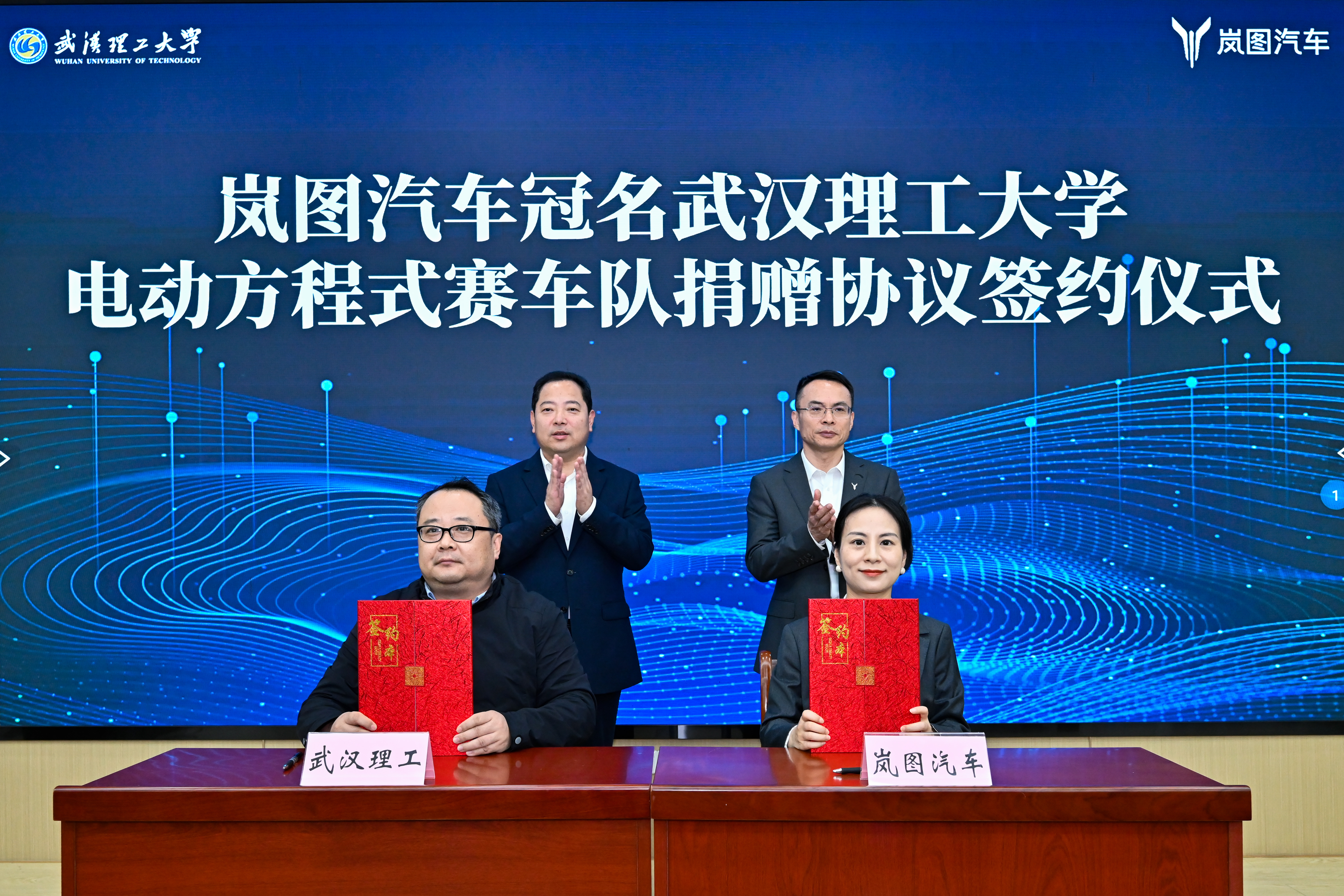 新闻网讯 11月6日上午,岚图汽车科技股份有限公司与武汉理工大学战略合作暨电动方程式赛车队冠名赞助签约仪式在学校汽车工程学院保隆科技报告厅举行。岚图汽车科技股份有限公司党委书记秦捷,学校党委书记孟芳兵、副校长胡剑等出席,相关职能部门与学院负责人、车队指导教师及全体队员共同参加。