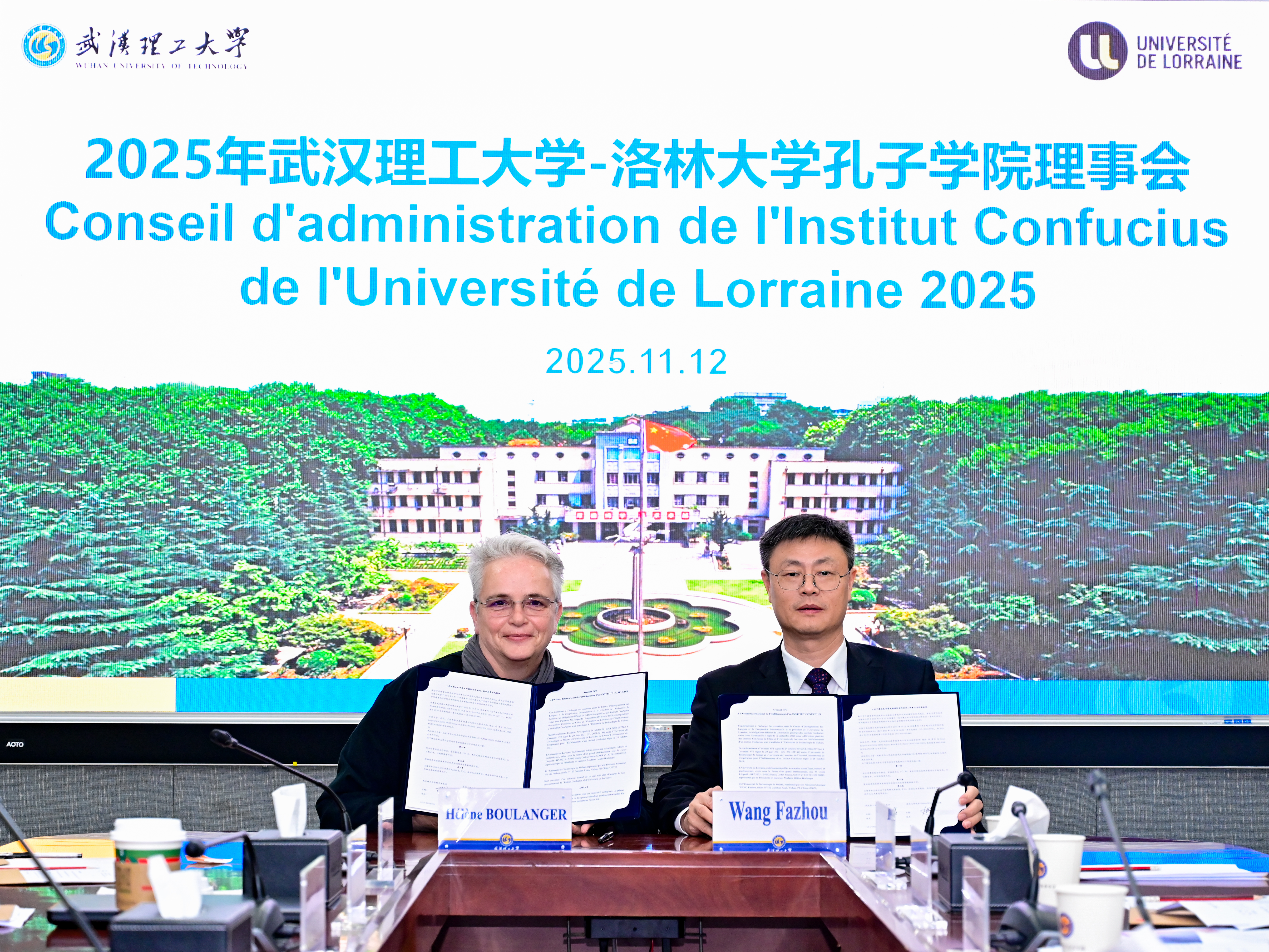 新闻网讯 11月12日,法国洛林大学校长艾兰力·布朗日(Hélène BOULANGER)教授率代表团访问我校,双方共同举行两校共建孔子学院(“孔院”)2025年度理事会。校长王发洲作为孔院中方理事长出席会议,副校长麦立强主持。