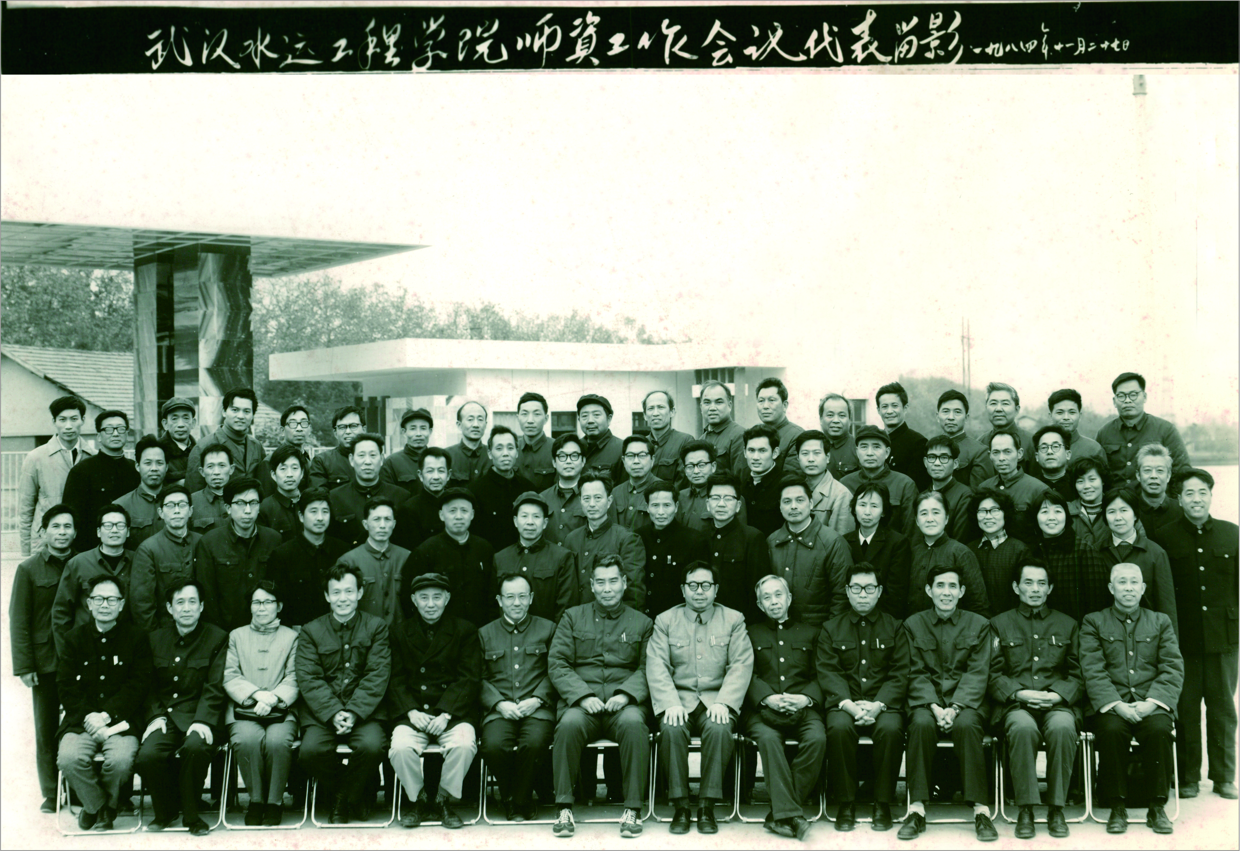 1984年11月武汉水运工程学院师资工作会议代表留影(第一排右五方为表)