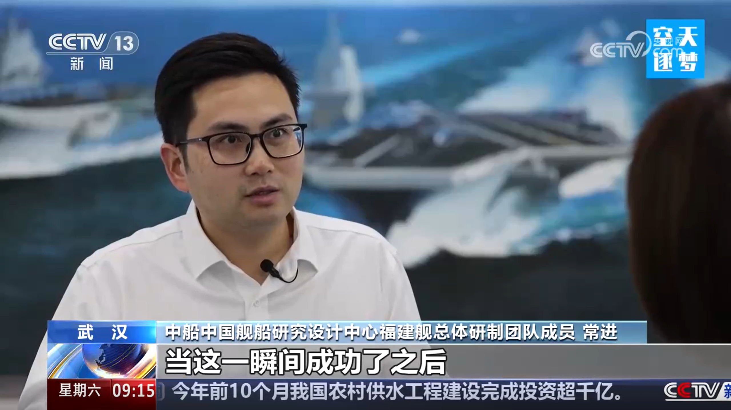 9月22日,中国海军发布消息,歼-15T、歼-35和空警-600三型舰载机已经完成在福建舰上首次弹射起飞和着舰训练。常进当时就在着舰训练的现场。常进:当这一瞬间成功了之后,大家欢呼雀跃,现场有很多人向我们设计团队投来的恭喜的掌声,我们当时觉得非常自豪。