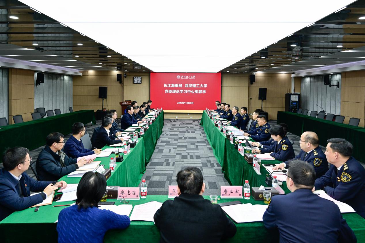 新闻网讯 11月28日下午,长江海事局与学校党委理论学习中心组在学校南湖校区图书馆多功能厅开展联学,双方中心组成员参加学习,聚焦“凝聚奋进‘十五五’新征程磅礴力量”主题,深入学习领会党的二十届四中全会精神、湖北省第十二届委员会第十一次全体会议精神和全省高校工作会议精神,并开展交流研讨。