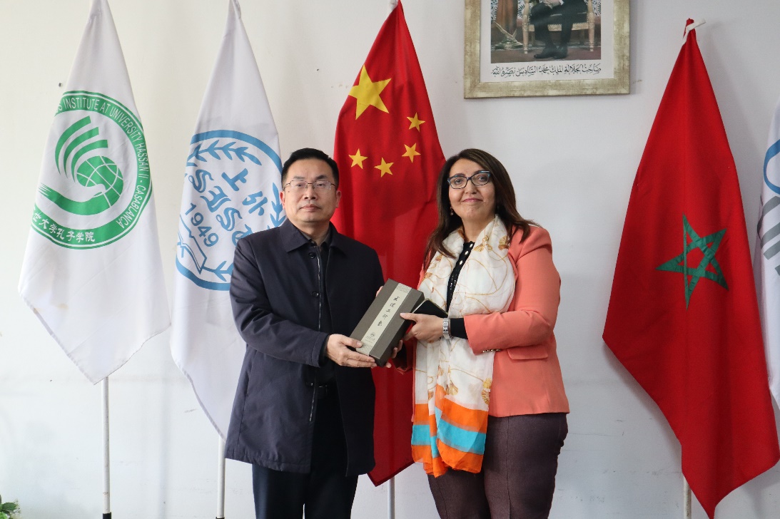 此外,代表团于12月8日访问哈桑二世大学孔子学院,在中方院长程洪金和外方院长法德玛·艾特·穆斯陪同下参观了孔院文化展室、多媒体教室、教师工作室等,双方就各自情况及特色项目进行了深入交流和工作分享,希望在未来开展相关项目的合作与交流。