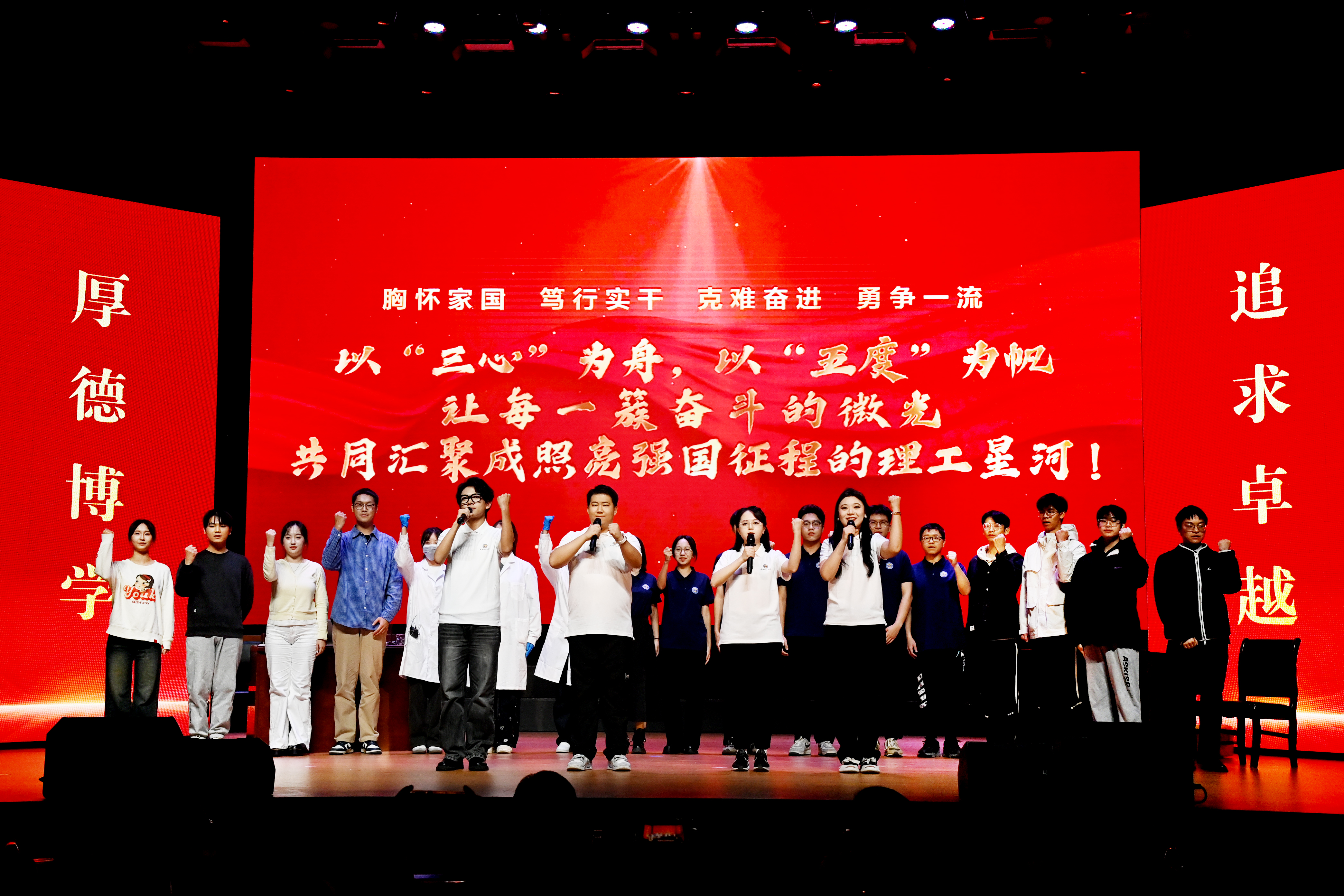 颁奖典礼分为“星火・担当、星河・共进、星光・育人”三个篇章,“星火・担当”篇章聚焦个人榜样与奋斗精神,呈现理工学子始终保持向上的姿态,用“卓越之质”展示“理工力量”的精神面貌;“星河・共进”篇章聚焦集体力量与团结奋进,讲述了理工学子在科研的高地上并肩作战、在竞技的赛场上互励共进、在成长的风雨中彼此支撑的生动故事;“星光・育人”篇章聚焦师德师风与传承,展现了教师一手擎起“经师”高度、一手传递“人师”温度的育人情怀,诠释了他们“为党育人、为国育才”的坚定信仰,彰显了武汉理工人“厚德博学、追求卓越”的精神内核。