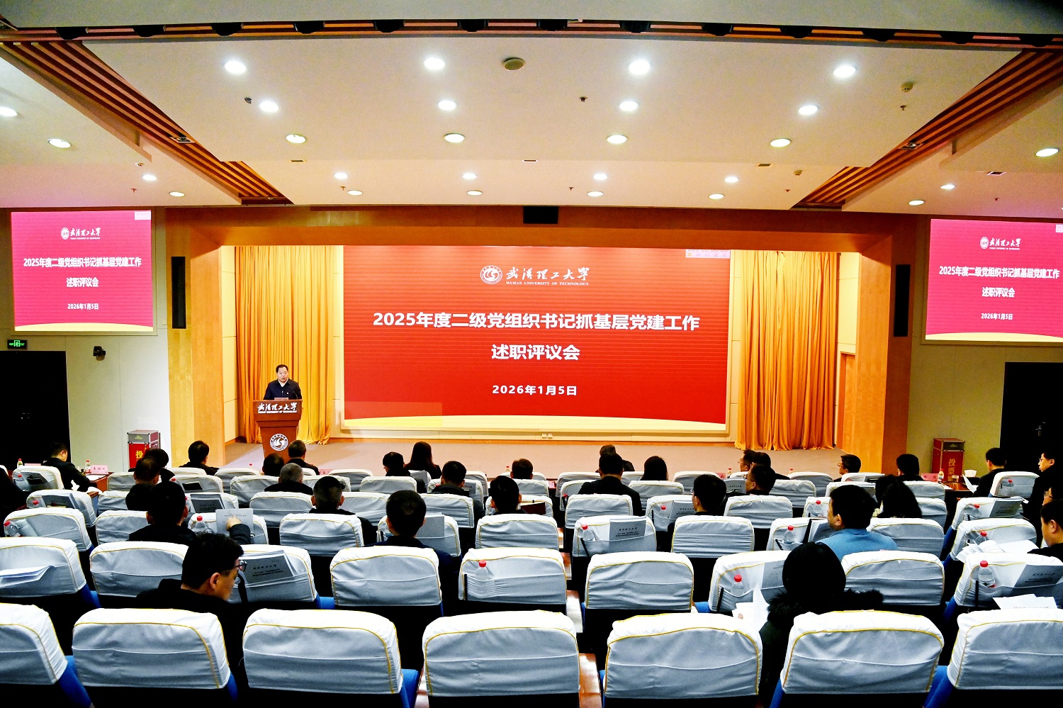新闻网讯 1月5日下午,学校召开2025年度二级党组织书记抓基层党建工作述职评议会。教育部党建工作联络员赵雪梅,学校党委常委、党委委员,党群部门主要负责人,各二级党组织书记,“两代表一委员”和师生党员代表等70余人参加会议。会议由校党委书记孟芳兵主持。
