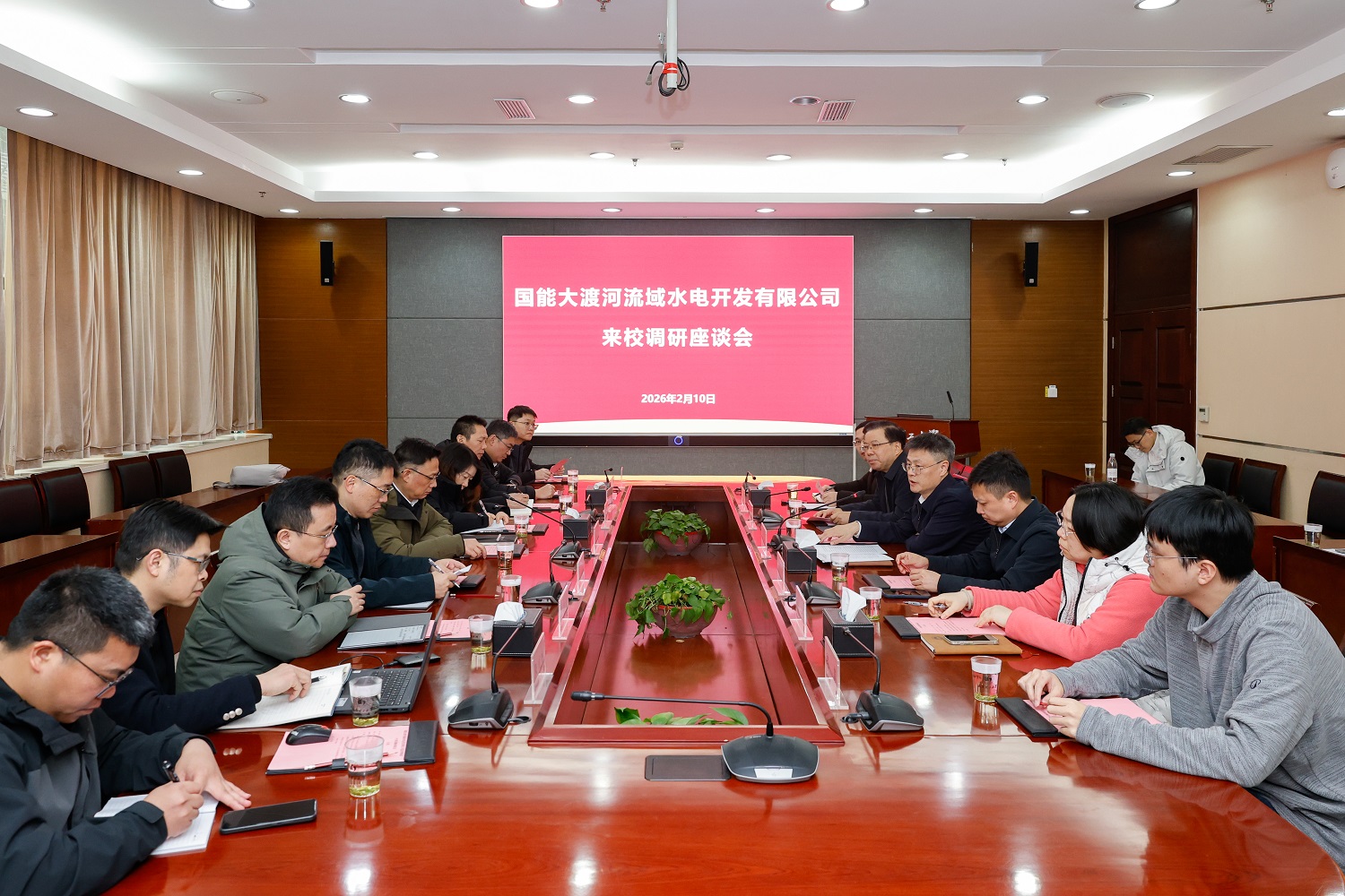新闻网讯 2月10日下午,国能大渡河流域水电开发有限公司总经理杨荣一行来校调研交流。校长王发洲、校党委副书记李潮欣出席座谈会。